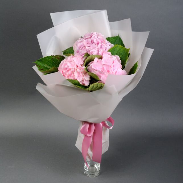 A bouquet of pink hydrangeas "Muse" will be a delicate and exquisite gift for your girlfriend.