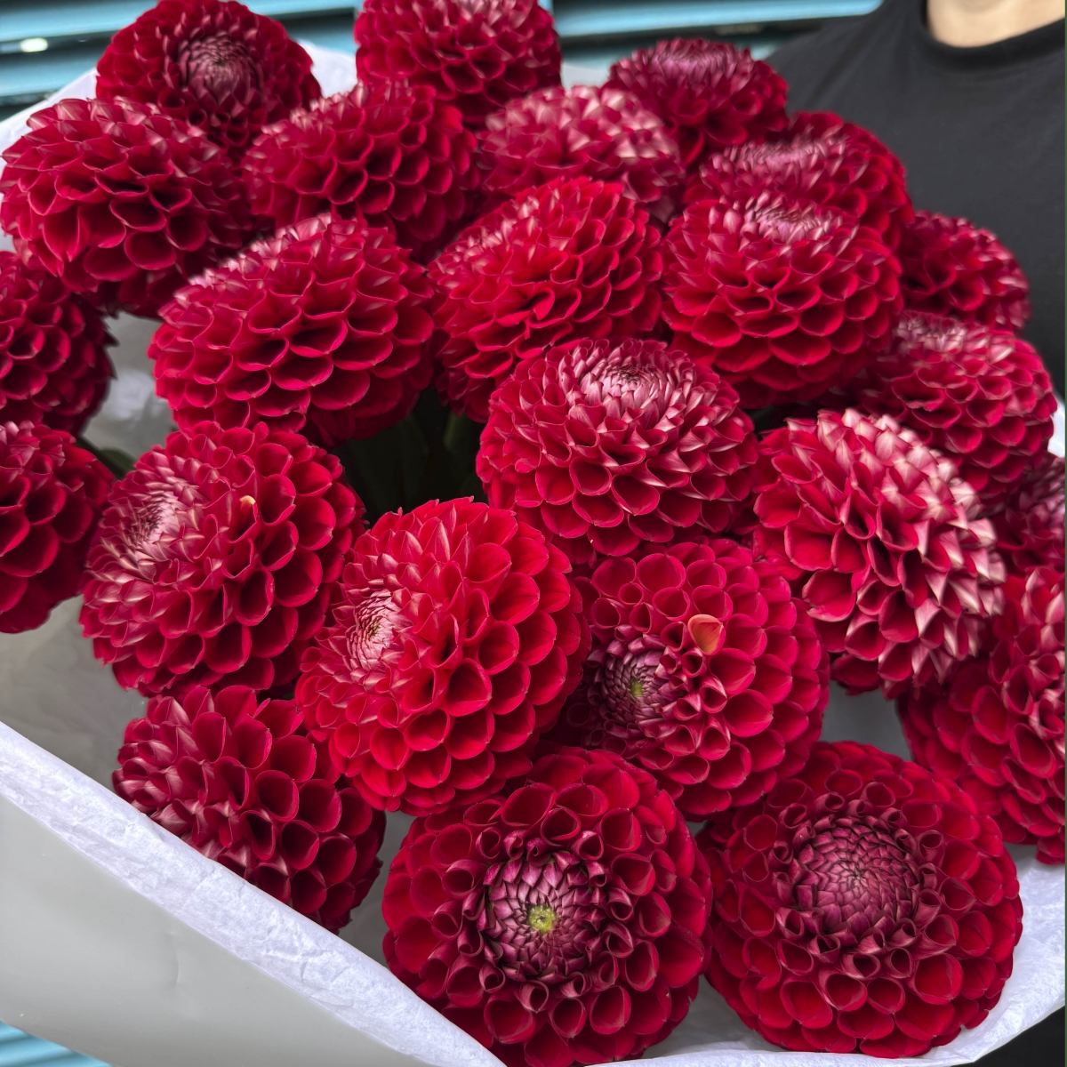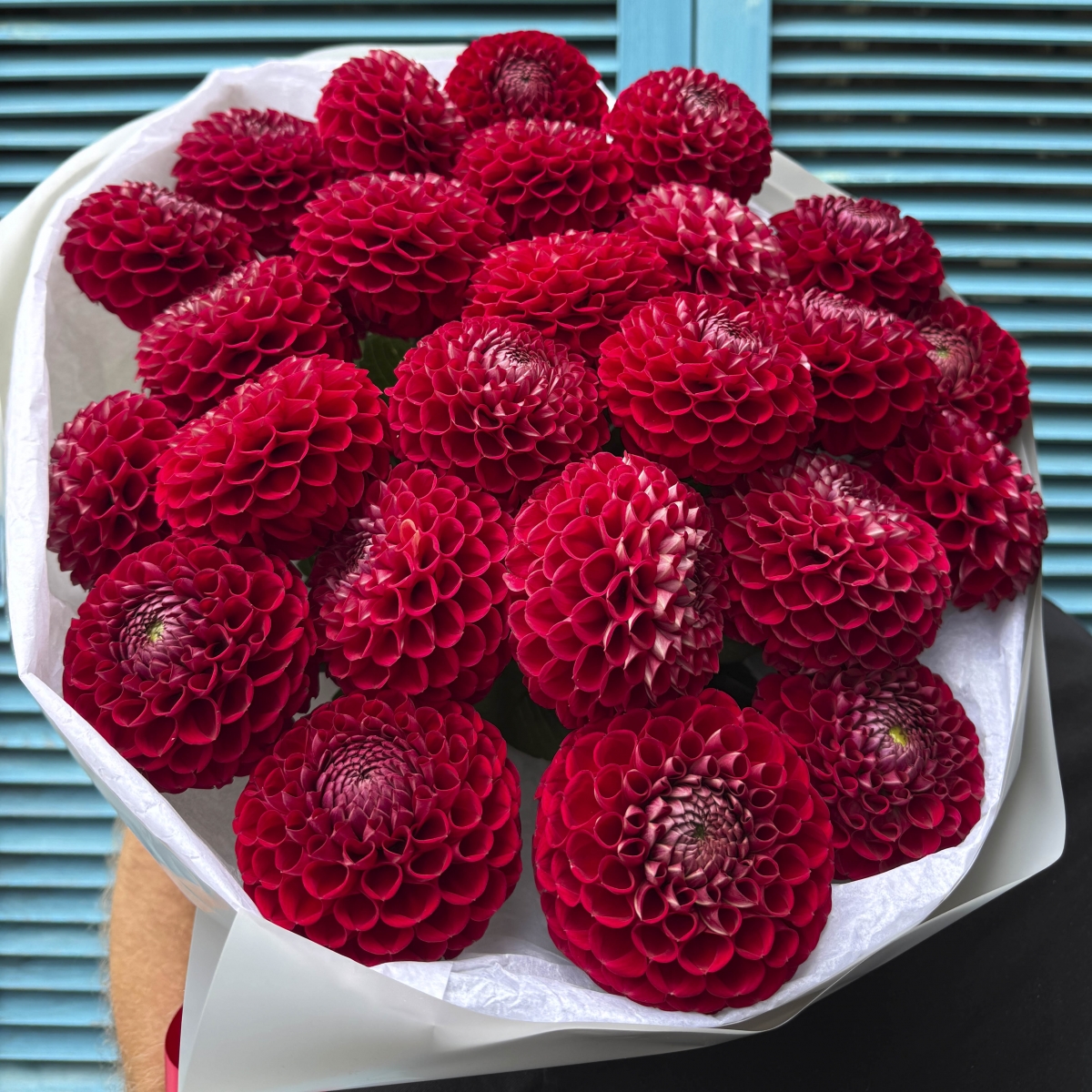 The Cornel Red dahlia bouquet is a true embodiment of refined elegance and passionate beauty. With its deep burgundy-red petals, each bloom radiates sophistication and warmth, making this bouquet a perfect gift for expressing admiration, gratitude, or heartfelt emotions. The Cornel Red variety is renowned for its perfectly symmetrical, jewel-like blossoms that look both luxurious and unique. These dahlias are not only visually stunning but also long-lasting, ensuring days of freshness and joy for the recipient.