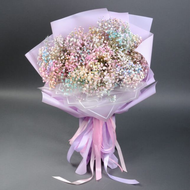 Welcome to the "Camellia" flower shop! An extraordinary gift awaits you - the Gypsophila Mix bouquet. This enchanting ensemble consists of 7 bushes of Gypsophila in various colors, creating an incredible interplay of flowers.