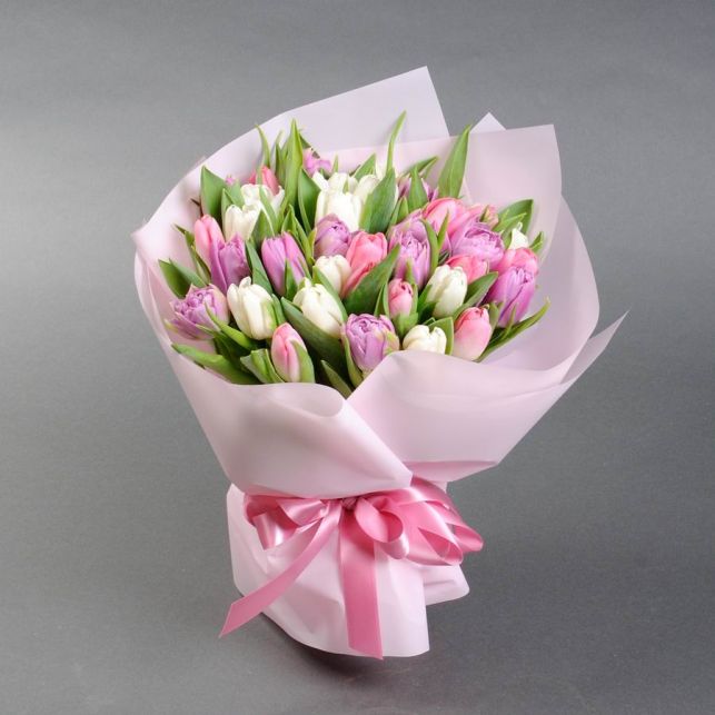 In our shop, you'll find only the highest quality flowers, and this bouquet is no exception. It impresses with the delicacy and beauty of each flower. This bouquet of tulips will make a perfect gift for your loved one, adding a touch of romance to your relationship.