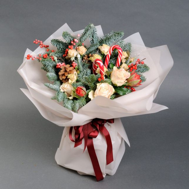 The Kamelia store welcomes you to the world of magical New Year's mood! Our bouquets are a combination of fresh flowers and charming New Year's decor, which will give you a unique holiday atmosphere.