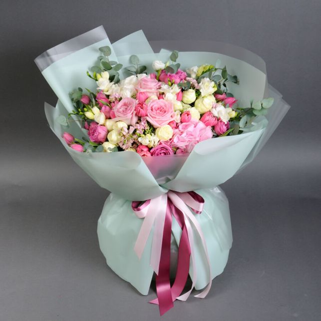 At Camellia store, discover the enchanting "Spring Breeze" Bouquet, impressing with its sophistication and freshness. Each element of this bouquet is a delicately chosen accent that gives it a special charm. Woven from the finest flowers, this bouquet makes an excellent gift for any significant event or simply as an expression of tenderness.