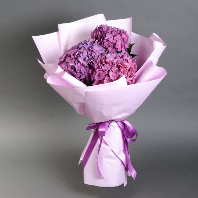 Indulge your senses in the delicate fragrance of hydrangeas from our Camellia store. We invite you to explore a world of beauty and sophistication with our bouquet of 3 violet hydrangea. This unparalleled arrangement captivates with its elegance and sensitivity.