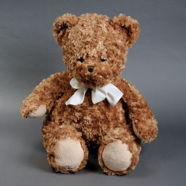 The soft toy bear Wilhelm the Great will be a good gift for a girl.