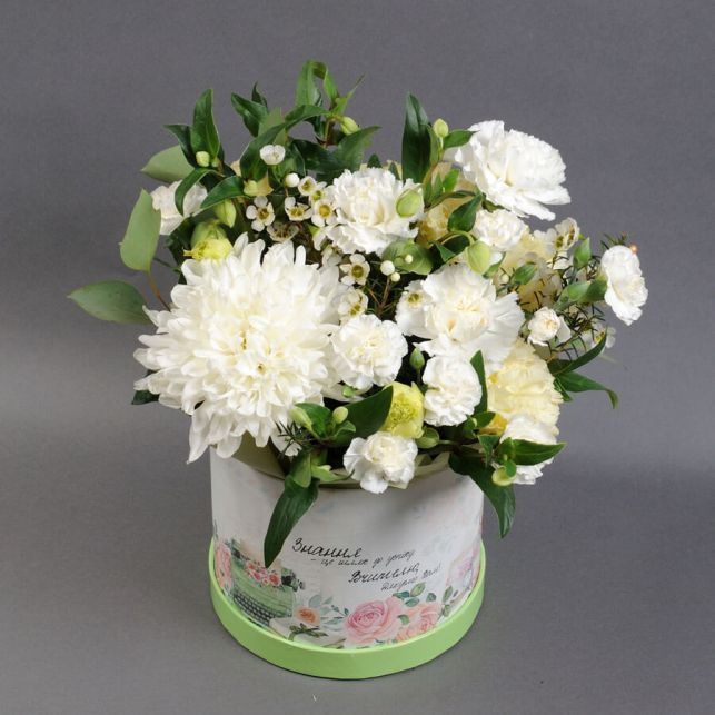 Welcome to Camellia, your go-to flower shop where you'll find the finest selection of bouquets and arrangements for those special moments in your life. Our new composition "Composition with White Chrysanthemums" is an exquisite expression of your feelings.