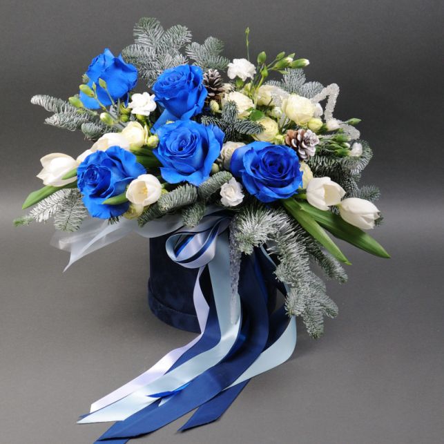 The "Winter Elegance in Blue Shades" composition from Camellia store is an exquisite combination of flowers in shades of blue that will add a unique charm and a festive atmosphere to your space. In our store, you'll find only the freshest and most refined flowers, and the 'Winter Elegance in Blue Shades' is a wonderful example of our carefully curated selection. We take pride in offering a wide variety of flowers and New Year's decor, always assisting you in creating a special atmosphere as the New Year approaches. Our prices are always reasonable, and the quality of our products is impeccable. Choosing "Winter Elegance in Blue Shades" from Camellia, you'll receive sophistication and freshness in every bouquet!