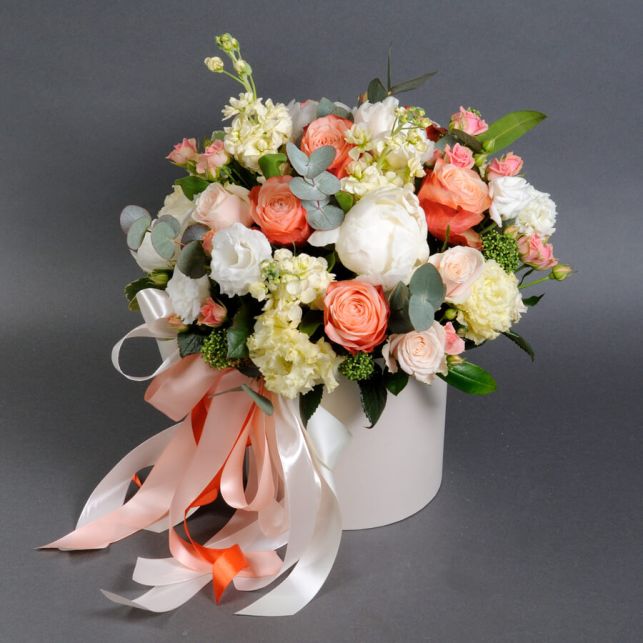 The floral composition "Seville" from Camellia store is an unmatched combination of elegance and sophistication. In our box, you will find flowers from the best suppliers, ensuring freshness and long-lasting preservation of exquisite beauty. Thanks to the skillful combination of roses, matthiolas, eucalyptus, and other plants, this composition captivates with its unique beauty and aroma. Purchasing flowers at Camellia store, you not only receive impeccable products but also experience a high level of service that makes your visit to our store unforgettable.