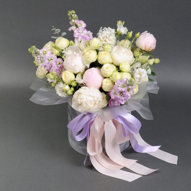 Embark on an exciting journey into the world of flowers at Camellia store! Our composition "Coral Reefs" is a true embodiment of summer freshness and beauty. It consists of spray roses Snow World, peonies, Matthiola, eustoma, hyacinth, and eucalyptus. Each flower in this composition is a small masterpiece of nature that impresses with its beauty and aroma. Purchasing this composition in our store, you will get guaranteed quality flowers and astonishing freshness that will last for many days. Treat yourself or your loved ones to a piece of summer mood and beauty with the "Coral Reefs" composition from Camellia!
