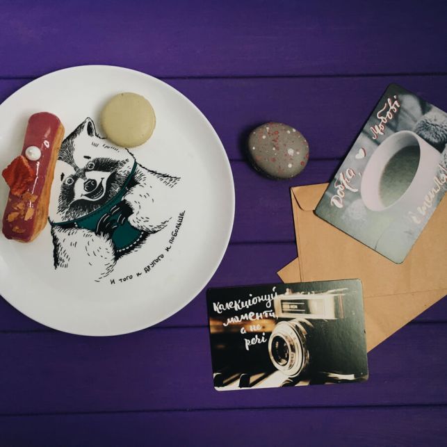 Merry plate "Raccoon of the heavy eate" from Orner for lovers of tasty eat and sing.