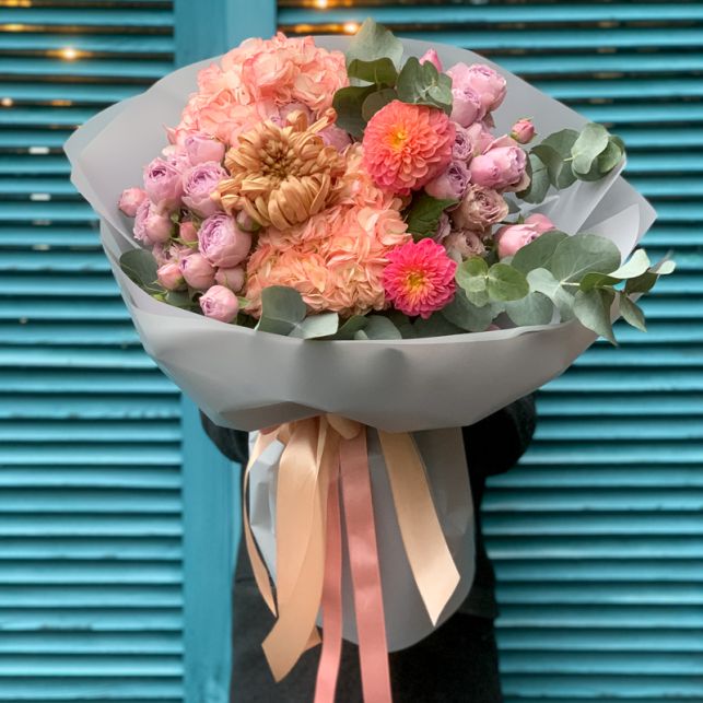 Добро пожаловать в магазин Камелия, где вы сможете почувствовать настоящее волшебство цветов. Букет "Феерия" - это изысканная композиция с гортензиями и пионоподобными розами, которая поражает своей красотой и неповторимостью.