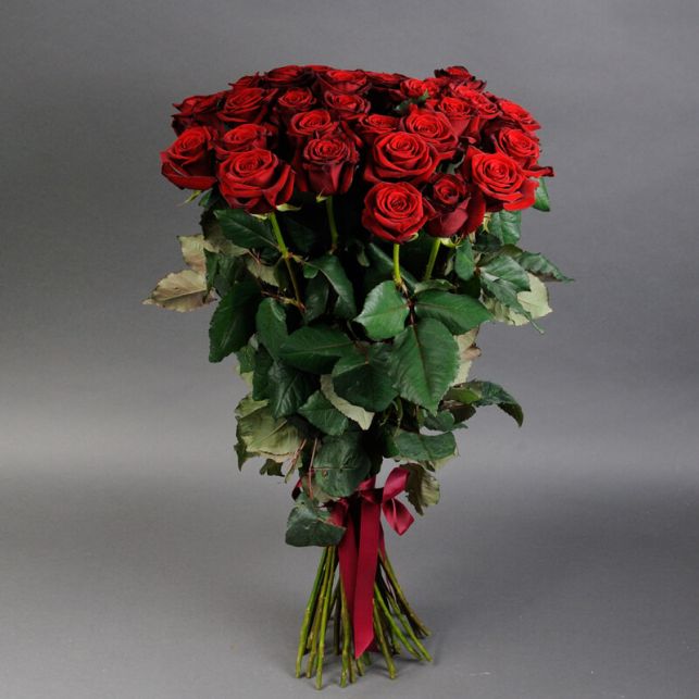 Добро пожаловать в наш магазин цветов - Camellia! Сегодня мы представляем вам изысканный букет из 35 роз Гран При, который станет настоящим украшением любого важного момента в вашей жизни.
