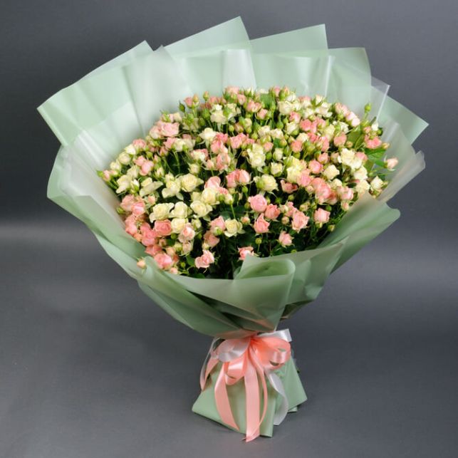 В составе этого букета 29 роз спрей, среди которых выделяются бесподобные сорта - Пінк Ванесса и Олена. Каждая роза — как проявление красоты и нежности, которые сделают ваши впечатления незабываемыми.