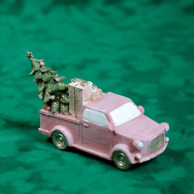 Декоративная фигурка машина с елкой. Статуетка с подсветкой, длина 15 см