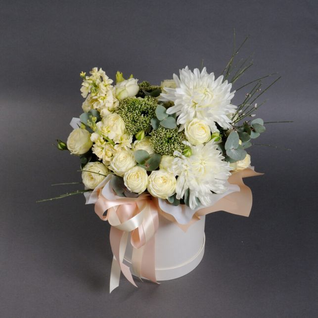Эта цветочная композиция состоит из самых красивых белых цветов, символизирующих чистоту и нежность. Она прекрасно подходит для различных важных событий в жизни, таких как свадьбы, юбилеи, или просто, чтобы порадовать себя или близких.