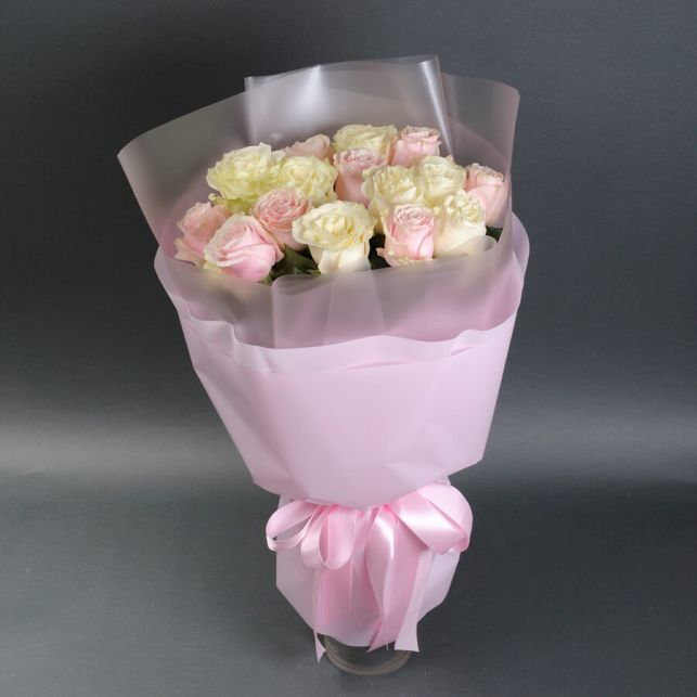 Ласкаво просимо до магазину квітів "Camellia", де ми пропонуємо вам чудову можливість придбати букет "Мондіаль та Пінк Мондіаль" з 15 троянд. Цей букет - це втілення ніжності та краси, яке неодмінно припаде до смаку як вам, так і вашому одержувачу.
