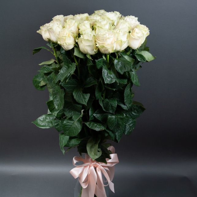 Магазин квітів Camellia пропонує неперевершений букет із 25 білих троянд Мондіаль - витончений символ чистоти та вишуканості. Кожна троянда в цьому букеті імпортного вирощування гармонійно поєднується з іншими, створюючи враження бездоганності.