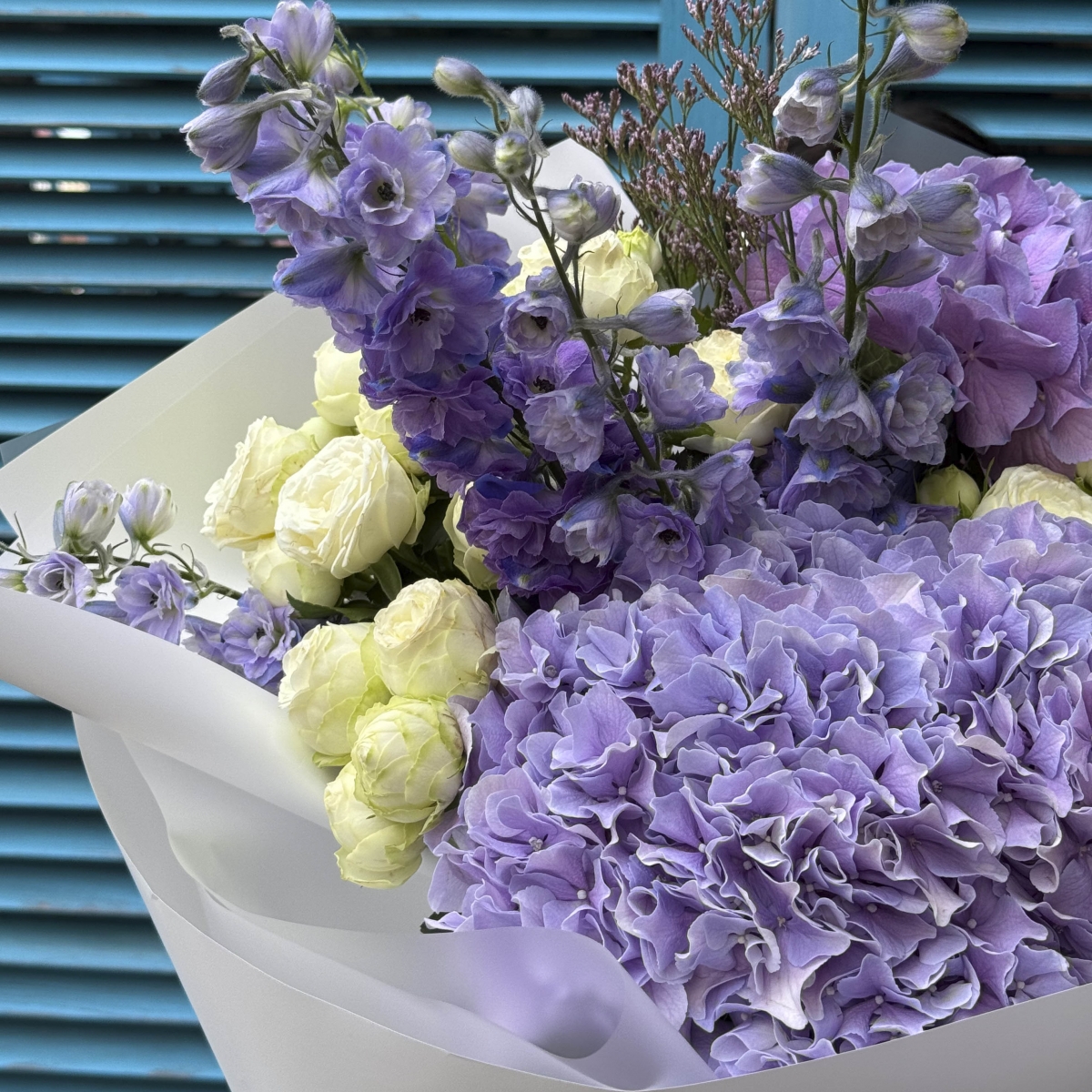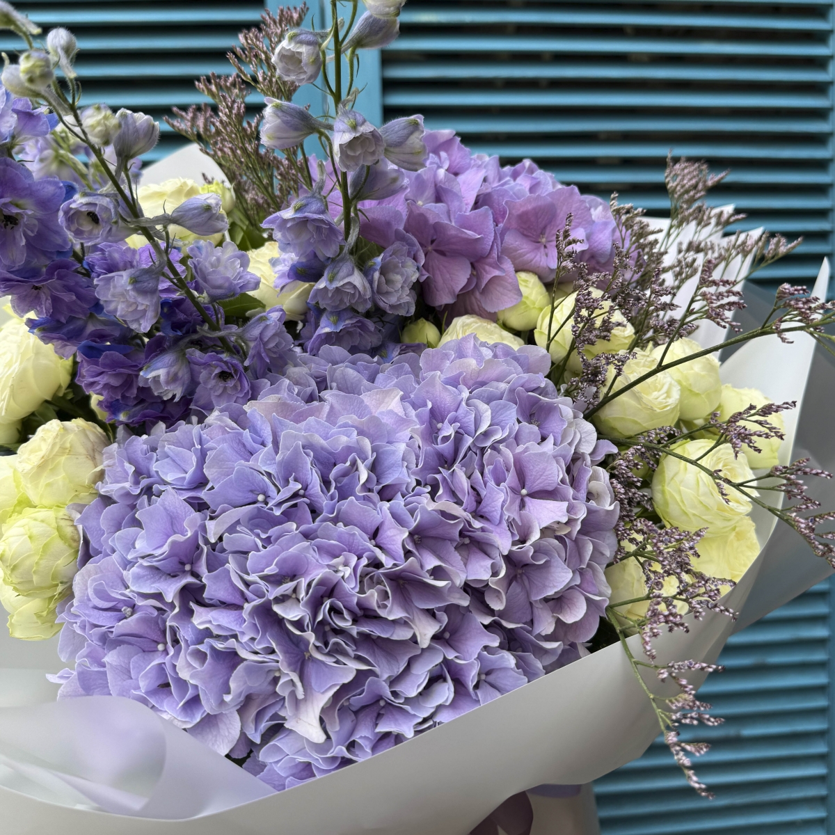 Гортензія, дельфініум, сноу волд, лимоніум