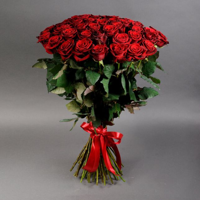 Ласкаво запрошуємо в магазин квітів "Camellia", де ми пропонуємо ексклюзивний букет із 51 троянди Гран Прі. Ці темно-червоні оксамитові троянди вирощені власноруч нашими фахівцями, гарантуючи неперевершену якість та свіжість.