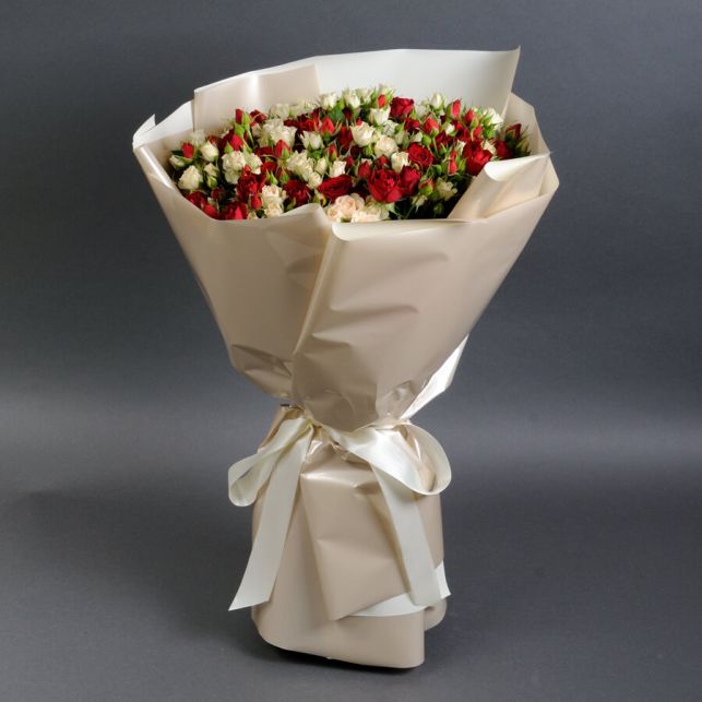 Ласкаво просимо в магазин квітів "Camellia"! Представляємо вам наш найвишуканіший букет - "Букет із 29 троянд спрей". Це витончений та неповторний вираз кохання та прихильності, який ми з гордістю виробляємо самостійно.