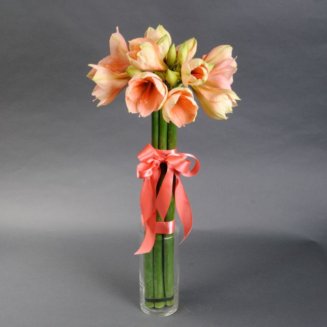 Букет складається з вишуканих персикових амарилісів, що символізують чистоту та ніжність. Кожна квітка відбирається з особливою увагою до деталей, гарантуючи вам найвищу якість.