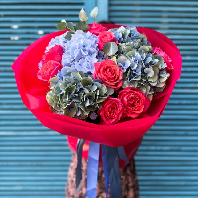 Гортензія, евкаліпт, імпортна троянда