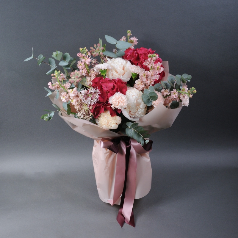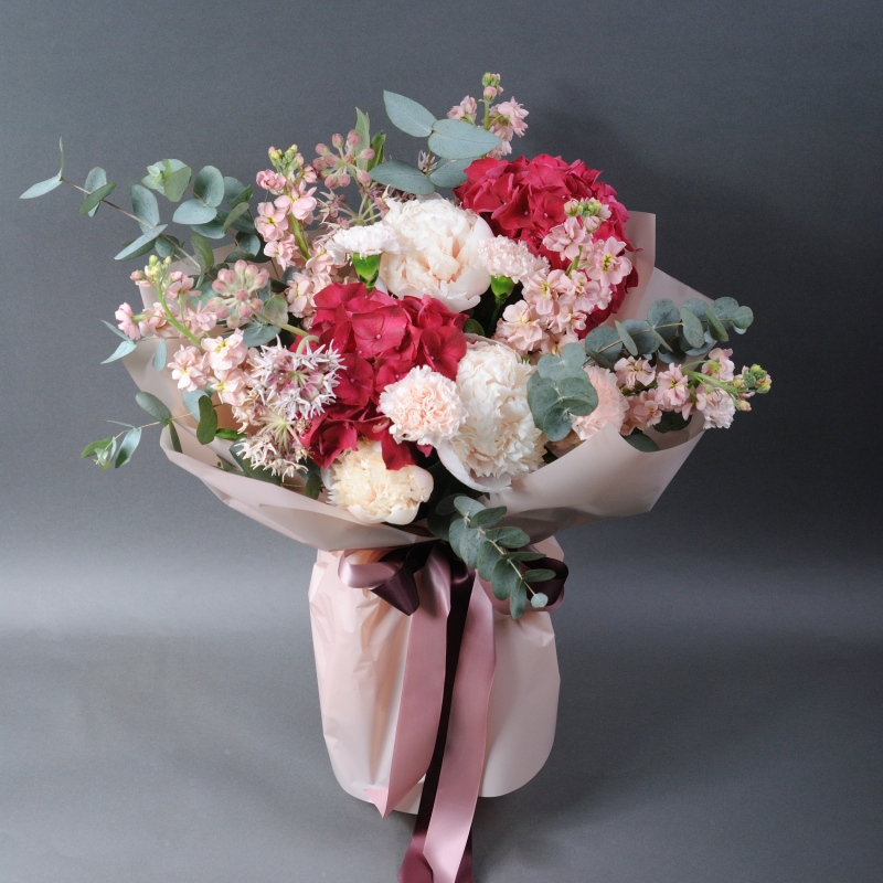 Матіола, Гортензія, Піон, Гвоздика, Евкаліпт Синерея, Асклепіас
