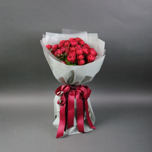 Букет із 9 піоноподібних троянд сорту Черрі Трендсеттер — це вишуканий подарунок, який вражає з першого погляду. Їхні великі, махрові бутони нагадують півонії, а насичений вишнево-рожевий відтінок створює відчуття розкоші та романтики. Ці квіти ідеально підходять для зізнань у коханні, ювілеїв, Днів народжень чи просто як приємний сюрприз без приводу.