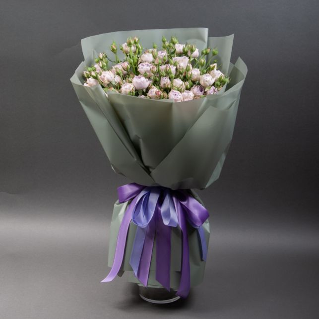 Цей ніжний букет з трояндами спрей виглядає неймовірно елегантно і ніжно. Він чудово підійде як подарунок для вашого коханого або коханої, або ж як дотепний символ вашої найкращої дружби. Кожна троянда в цьому букеті вирізняється своєю неповторною красою та ароматом.