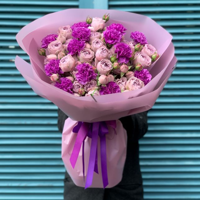 Магазин Камелія запрошує вас в світ квітів, де кожен букет – це неповторний шедевр. Наш новий букет з піоноподібними трояндами та гвоздиками – це символ свіжості та ніжності.