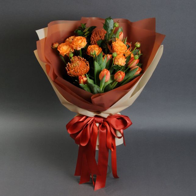 В магазині Camellia ви знайдете неперевершений букет під назвою "Захід сонця". Ця краса стане витонченим подарунком для вашого коханого чи виразом щирої подяки. І що робить цей букет особливим?