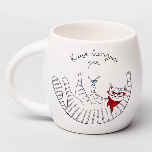 Чашка "Киця вихідного дня" створена з любов'ю і турботою українськими майстрами, що гарантує високу якість кожного виробу. Ручна робота додає особливого шарму кожній чашці, роблячи її неповторною. Це не просто посуд – це справжнє мистецтво, яке можна тримати в руках і використовувати щодня.