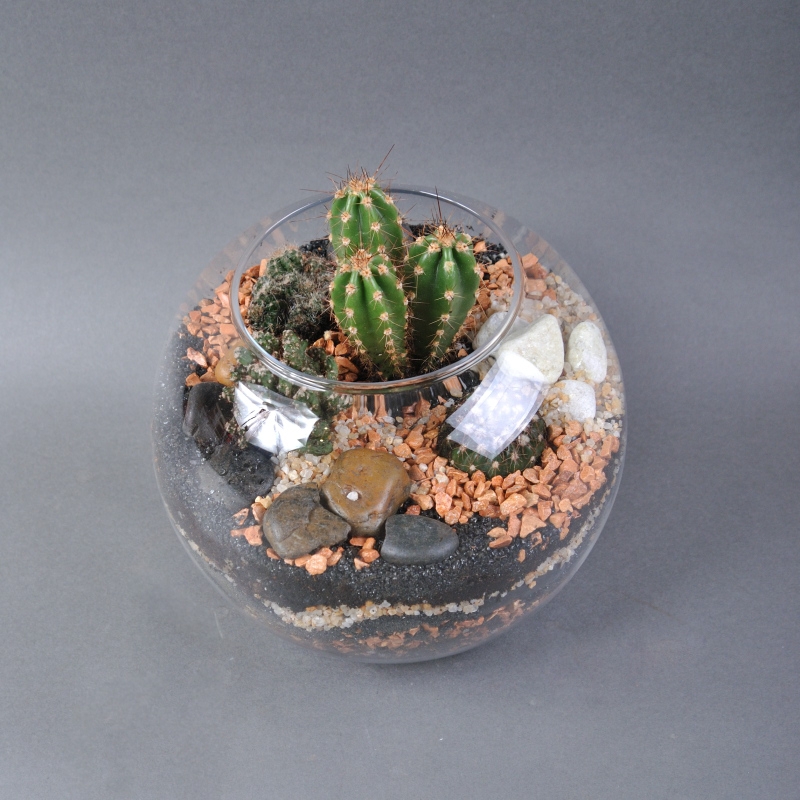 Цей флораріум в керамічному кашпо стане чудовим доповненням до вашого інтер'єру та подарує вам атмосферу спокою та гармонії. Суккуленти - це не лише красиві рослини, а й дуже міцні та витривалі, тому вони будуть радувати вас своєю зеленню протягом довгого часу.