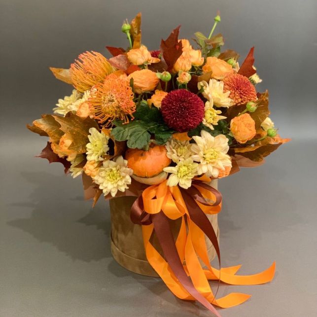 Завдяки оригінальній капелюшній коробці, цей подарунок буде виглядати надзвичайно елегантно та стильно. Оранжеві троянди, що входять до складу композиції, символізують енергію та тепло. Вони створюють атмосферу радості та оптимізму, роблячи цей подарунок ідеальним вибором для будь-якого свята.