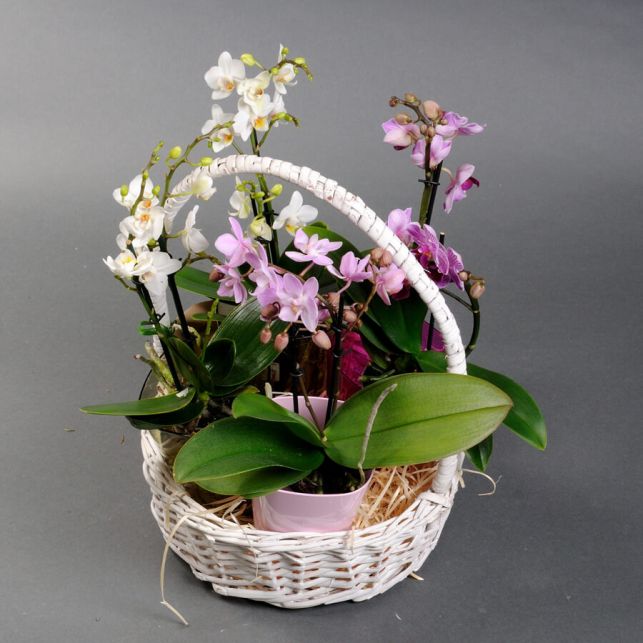 Мікс міні орхідей фаленопсис в корзинці