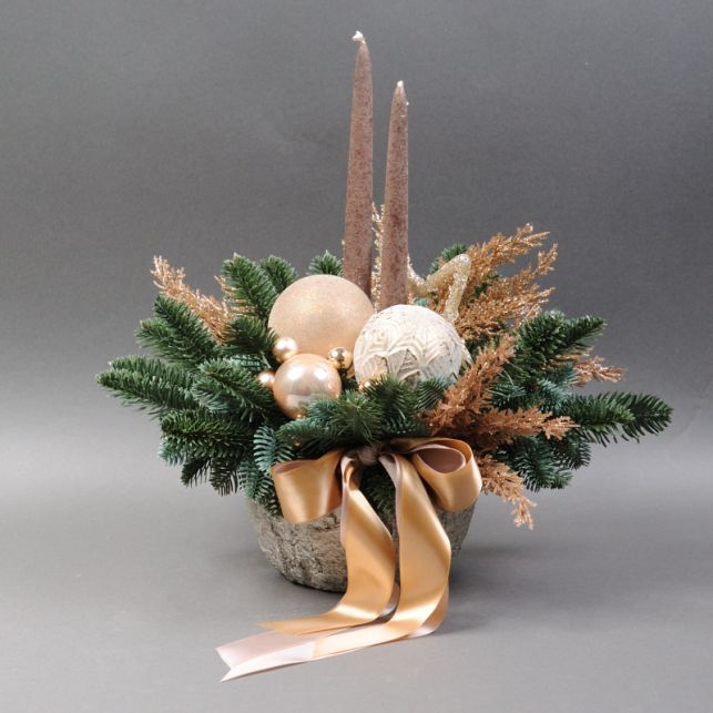 Штучні гілки туї та ялинки, новорічні іграшки кулі, підвіска скляна, свічки столові велюр/металік